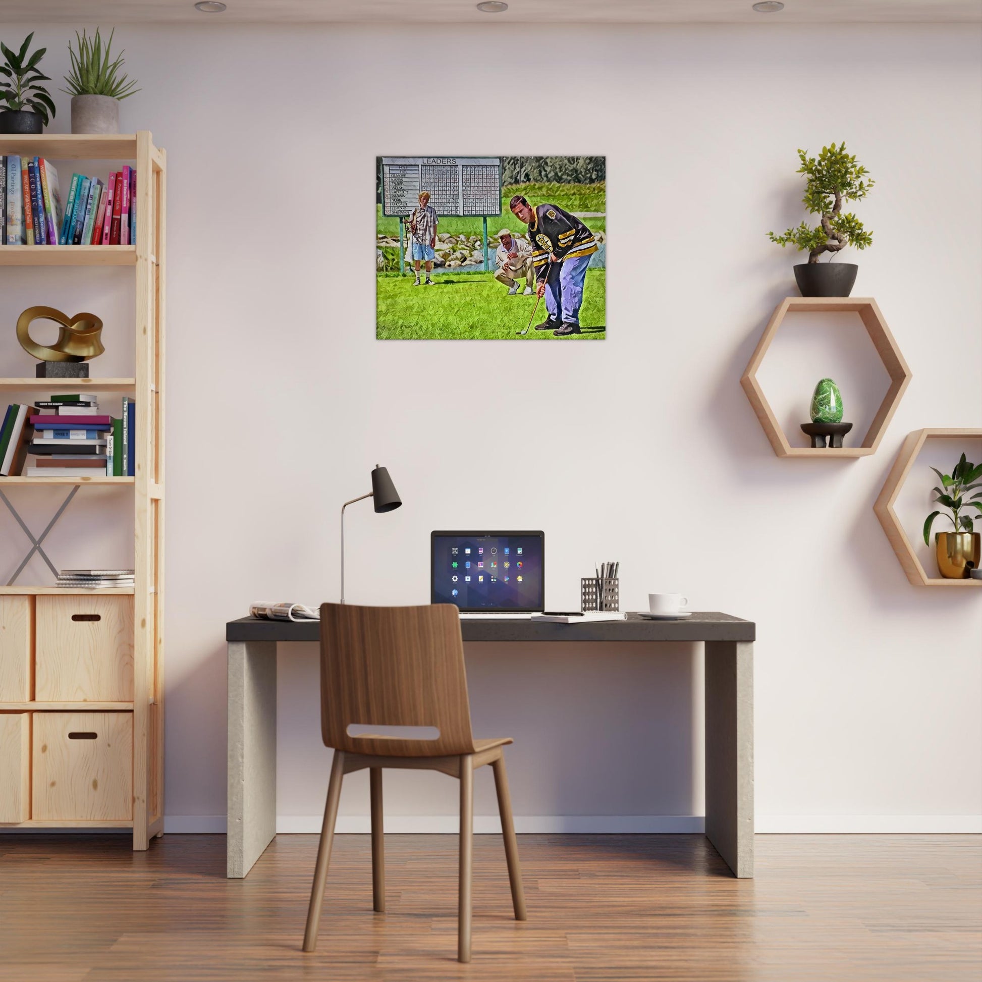 Some golfers play for money. Other golfers play for money to save their grandma's house. Regardless of which one you are, this oil panting print on canvas is the perfect way to enhance your man cave, home office or dorm room with a timelessly classic scene from the 1995 Waterbury Open.